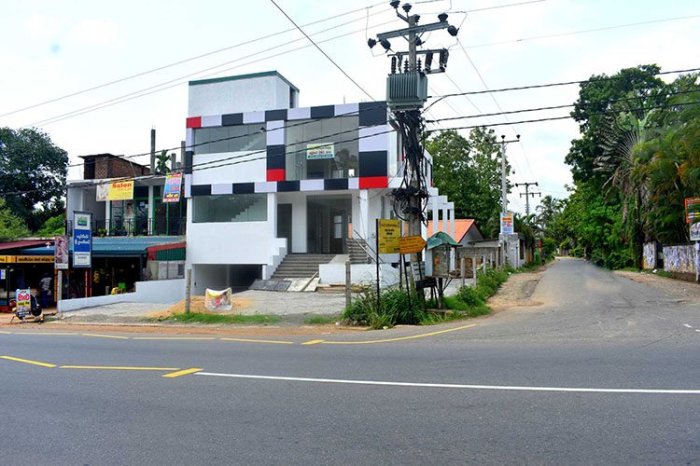 Newly built 3 storied commercial building for Sale or Rent in Kurunegala, located at Kiriwawla junction facing to Kururnegala- Dambulla main Road. Only 6 km from Kurunegala city. Well-developed commercial area. Ideal place for a private hospital, medical center, shopping complex, banks or other financial companies or a Supermarket.