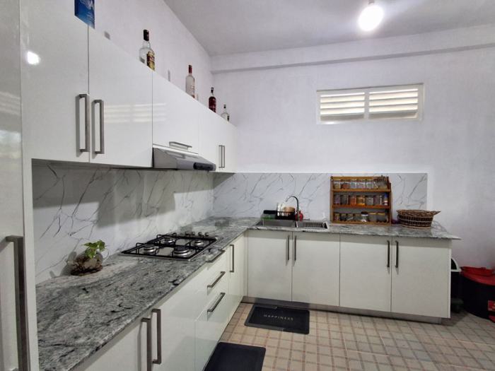 - Modern Kitchen – Newly built with pantry cupboards, stone benchtop, and premium finishes.නවීන මුළුතැන්ගෙය - පැන්ට්රි කබඩ්,ගල් බංකු වලින් සමන්විතව අනර්ඝ නිමාවක් සහිතව අලුතින් ඉදිකර ඇත.